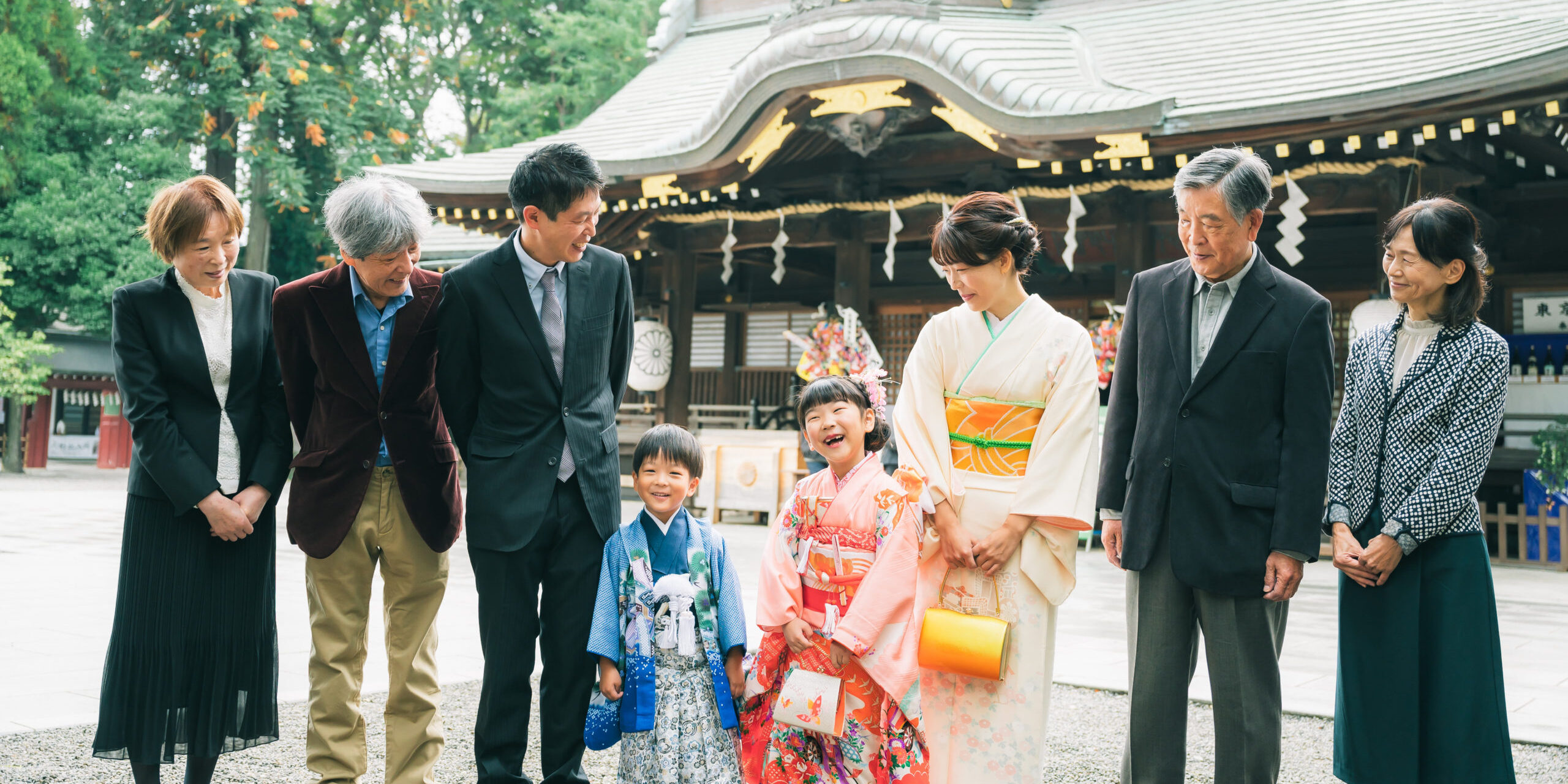 お子様の今までの健やかな成長を神様に感謝御報告すると共に今後の更なる成長を祈願するお祭りです。この為にお子様の成長に併せ「髪置(かみお)き」「袴着(はかまぎ)」「帯解(おびと)き/紐解(ひもと)き」の祝いとされています。髪置きは三歳の男女児の祝いで、もう赤ん坊ではないという意味から今まで剃ってきた髪をこの日から伸ばし始める儀式です。袴着は五歳の男児の祝いで、初めて袴を付ける儀式、帯解き(紐解き)は七歳の女児の祝いで、着物の付け紐を取り去り帯に替える儀式です。